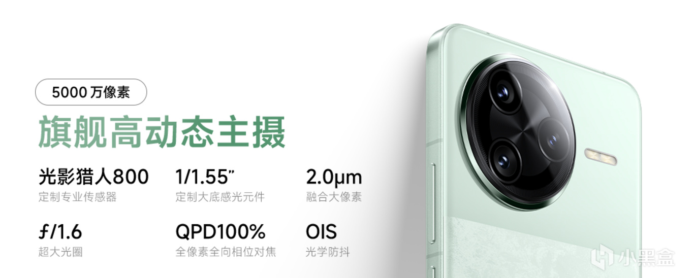 主攝是光影獵人800,國產豪威的傳感器,尺寸1/1.55",搭配F/1.6光圈,支持OIS光學防抖。