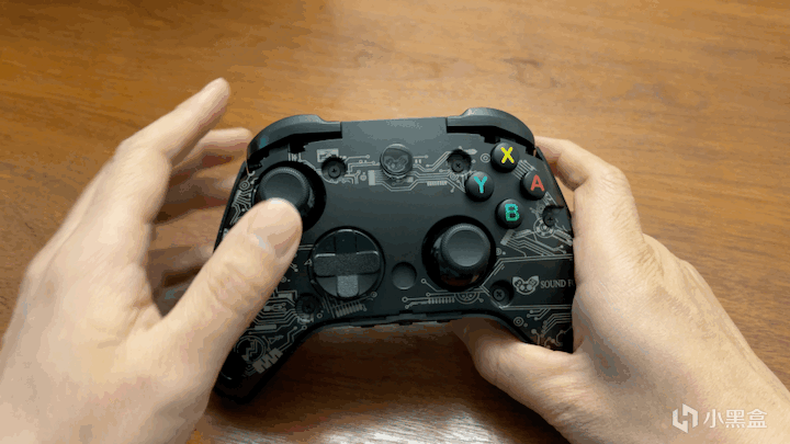 小結一下吧:紮實的握持感覺,細膩的觸感,是初刻上手奕狐狩獵手柄的第一感覺。雖然採用了可換面蓋的設計,但面蓋與手柄結合的非常好,渾然一體!兩個搖桿順滑,按鍵回彈有力,十字鍵定位較爲清晰,特別是霍爾扳機鍵,它恰當的反饋力度彷彿在扣動真鐵!