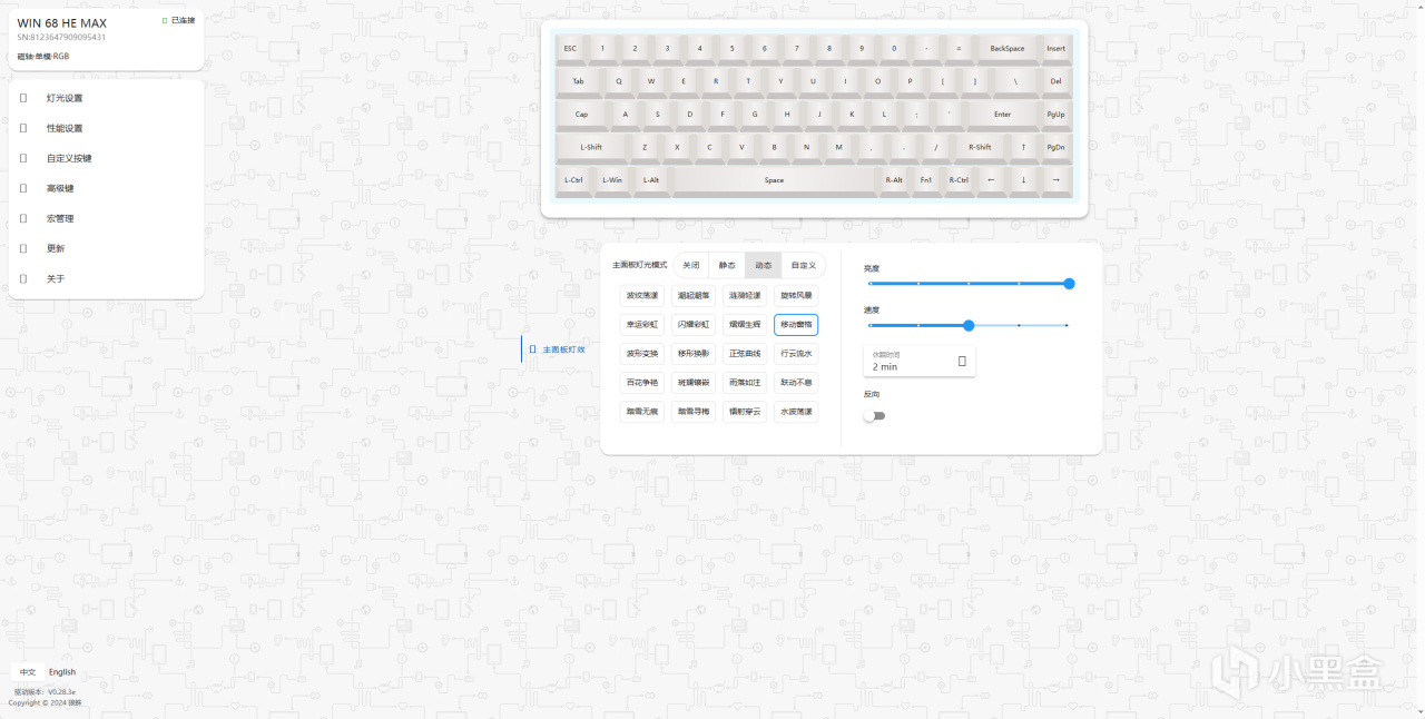 說完了鍵盤的外觀以及配置,我們來說說這款鍵盤最重要的一個地方,驅動,本次狼蛛驅動採用網頁驅動的設計,網頁驅動的設計對於磁軸來說更加的方便,無需下載驅動,直接丟到收藏夾裏面,用的時候直接打開就可以。首先我們可以看見驅動裏面最開始的就是我們的鍵盤最基礎的燈光調節這些的。