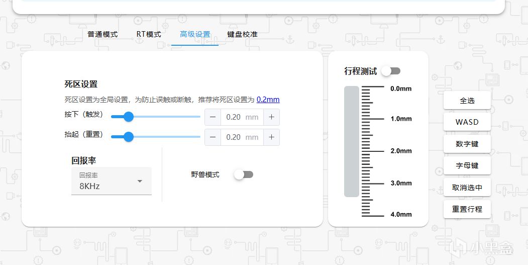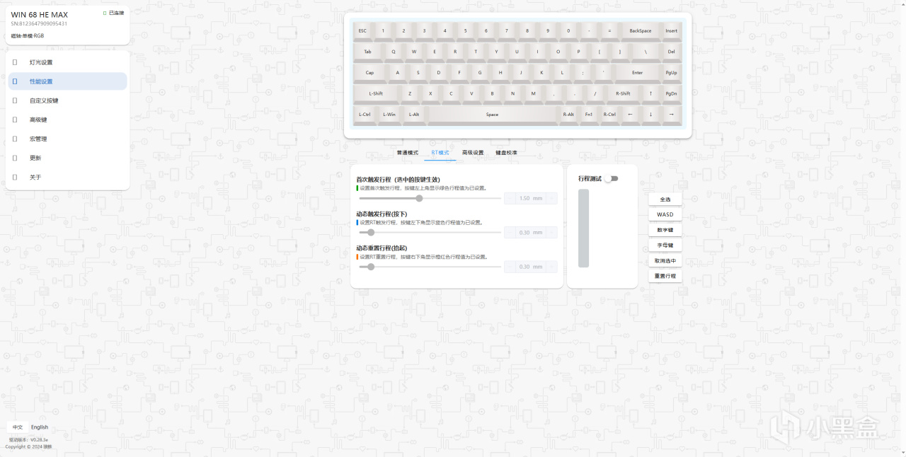 這款磁軸還自帶了磁軸校準功能,這一點是我非常喜歡的,它可以在你感覺這個軸體觸發不是之前那麼準的時候校準一下,讓鍵盤的性能重置一下,是非常好的。