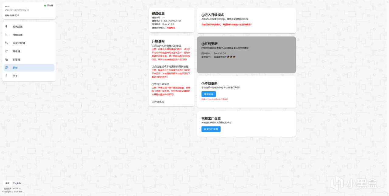 切記!!!如果你的鍵盤到手之後沒有要更新的地方,那麼請你管住自己發財的小手,不要點擊更新哦,不然你的鍵盤就會和我的一樣,變成一塊磚頭了,怎麼樣記住沒有。