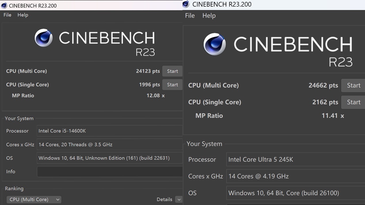 245K 這芯片設計可有點意思,它沒用超線程技術,而是選擇堆多核。你知道超線程吧?就像是給每個內核請了個 “小助手”,能同時處理多個任務,提升多核性能。但這 “小助手” 也不是白乾活的,會讓功耗蹭蹭往上漲,還會讓延遲增加。不過這代 245K 取消超線程,我覺得也沒啥不好。就好比本來一個辦公室裏有個複雜的管理系統(超線程),現在簡化成了更直接的管理方式(多核),系統調度反而更簡單了。而且這代的小核那叫一個猛啊,我都想給它改名叫中核了!整體性能比上一代 14600K 可是有小幅度提升哦。就像在 CINEBENCH R23 跑分這個 “考場” 上,245K 的多核成績從 14600K 的 24123 pts 進步到了 24662 pts,單核成績也從 1996 pts 上升到了 2162 pts,這進步是不是很明顯?