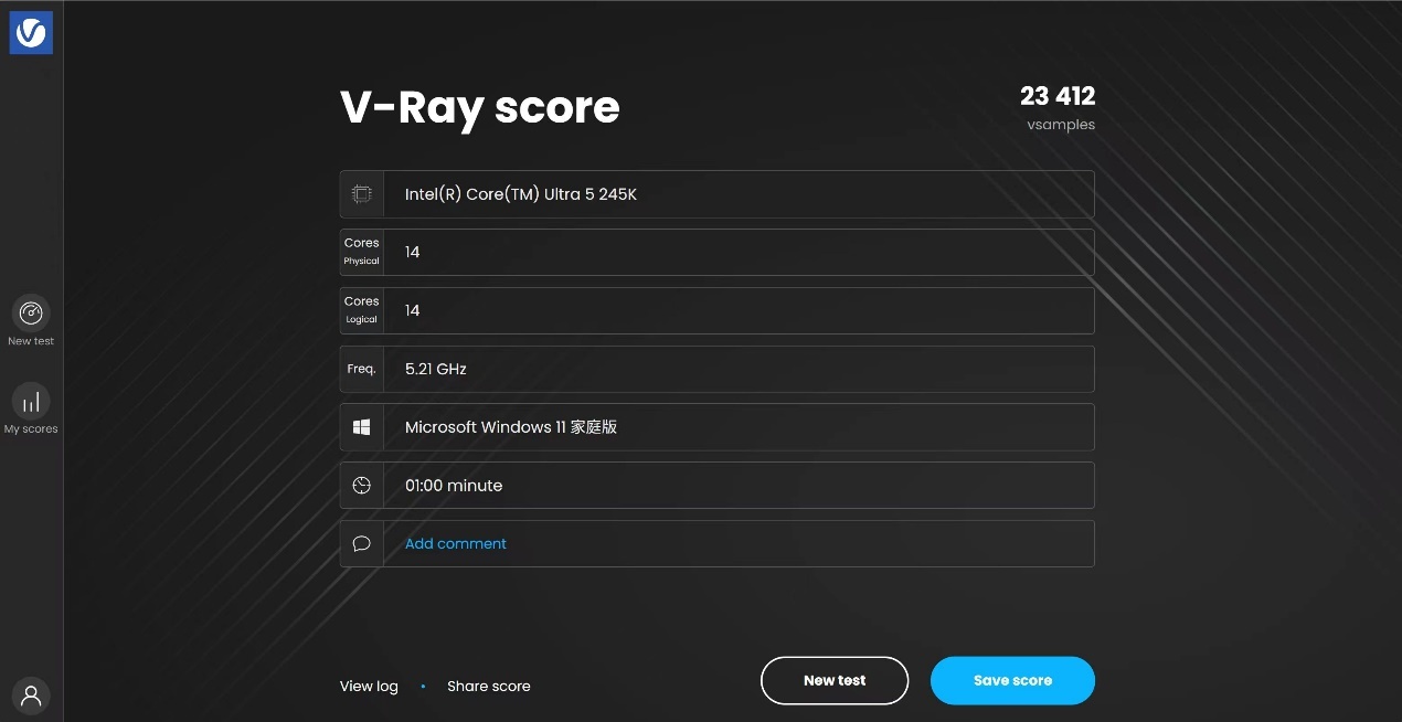 我平時用 Adobe 軟件比較多,Ultra5 245K 對 Adobe 的優化那叫一個好啊,就像是 Adobe 的 “鐵哥們”。而且它還新增了核顯硬解索尼拍攝的 8K 視頻的功能,我用核顯直接播放一段 6.2K 10bit 422 h.265 編碼的視頻,那叫一個順暢,一點卡頓都沒有。導出視頻的時候也很快,感覺就像是開了加速器一樣,能直接跑在 Xe2 代核顯上。用 VRay 渲染器僅 CPU 測試的時候,性能分數高得很,滿足輕中度的工作需求那是綽綽有餘。