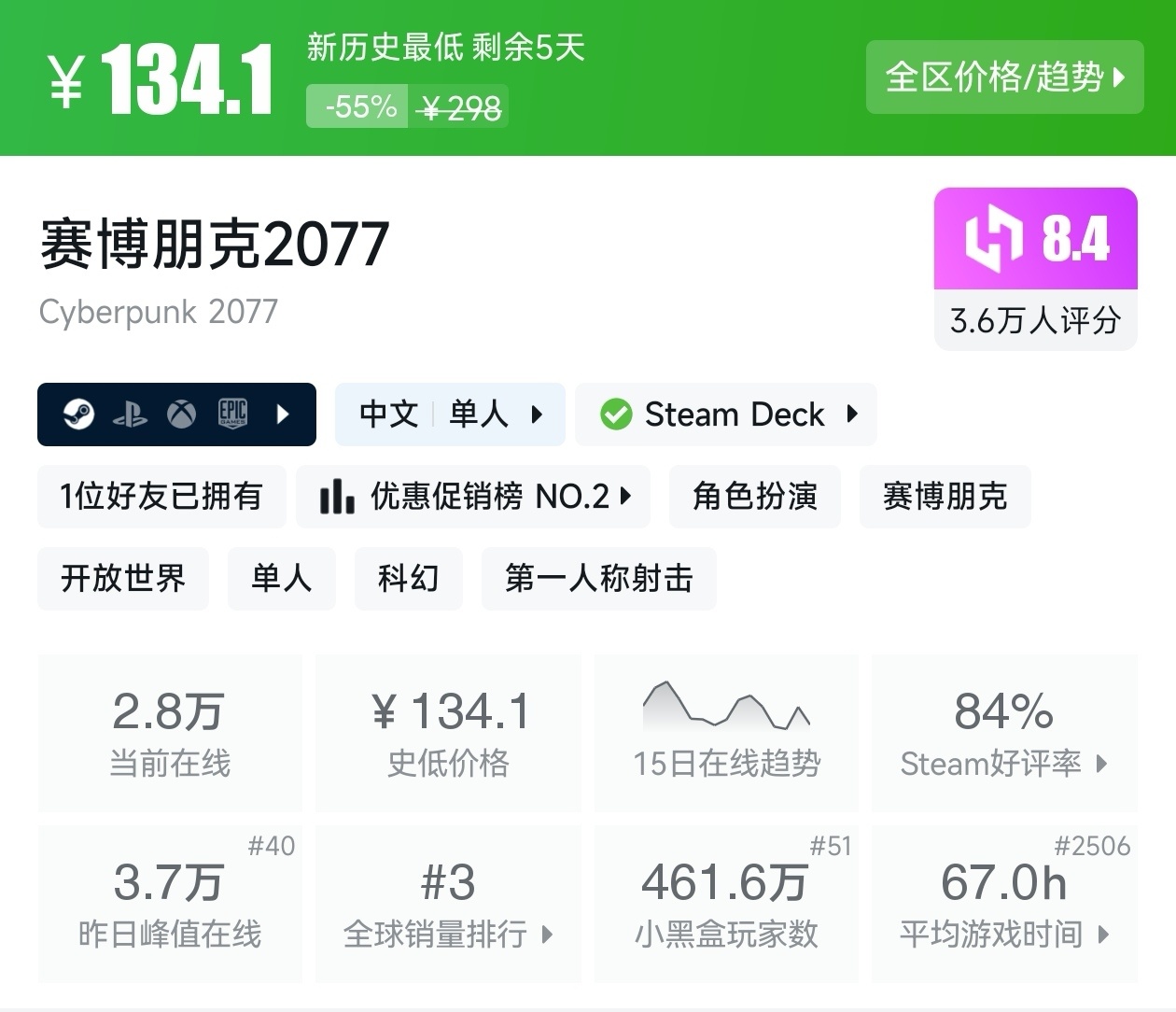 新史低,在赛博朋克的世界里,你我都是夜之城的传奇。