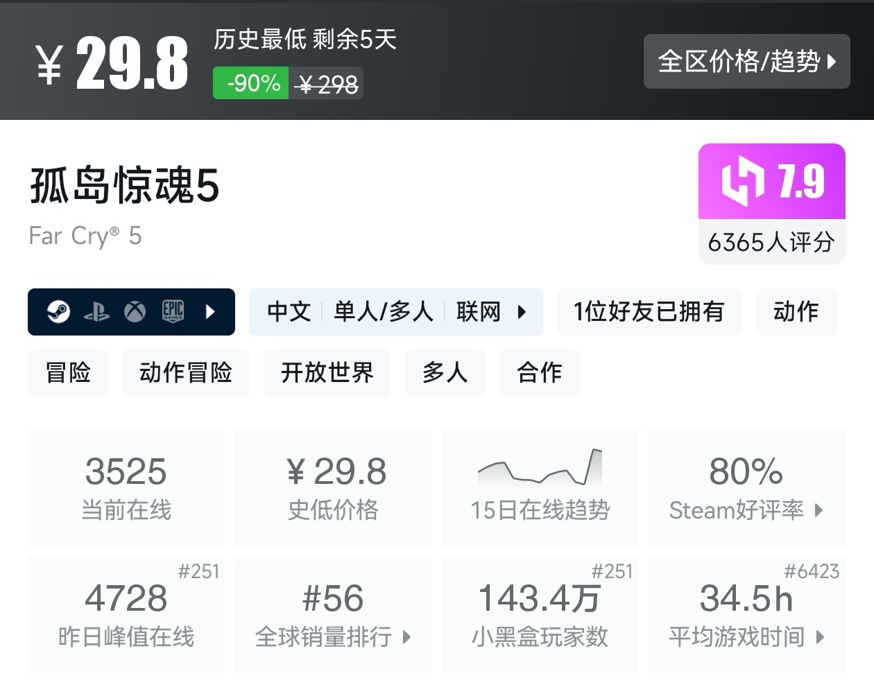又名远哭5,游戏的音乐与美术都是顶级的,用XGP会员玩过这款游戏,体验还是很好的,可能是我玩的第一款孤岛惊魂的原因。