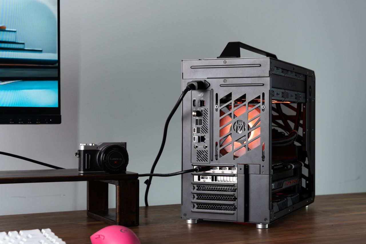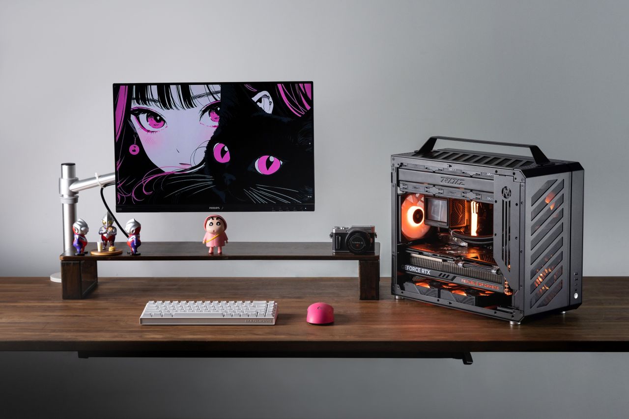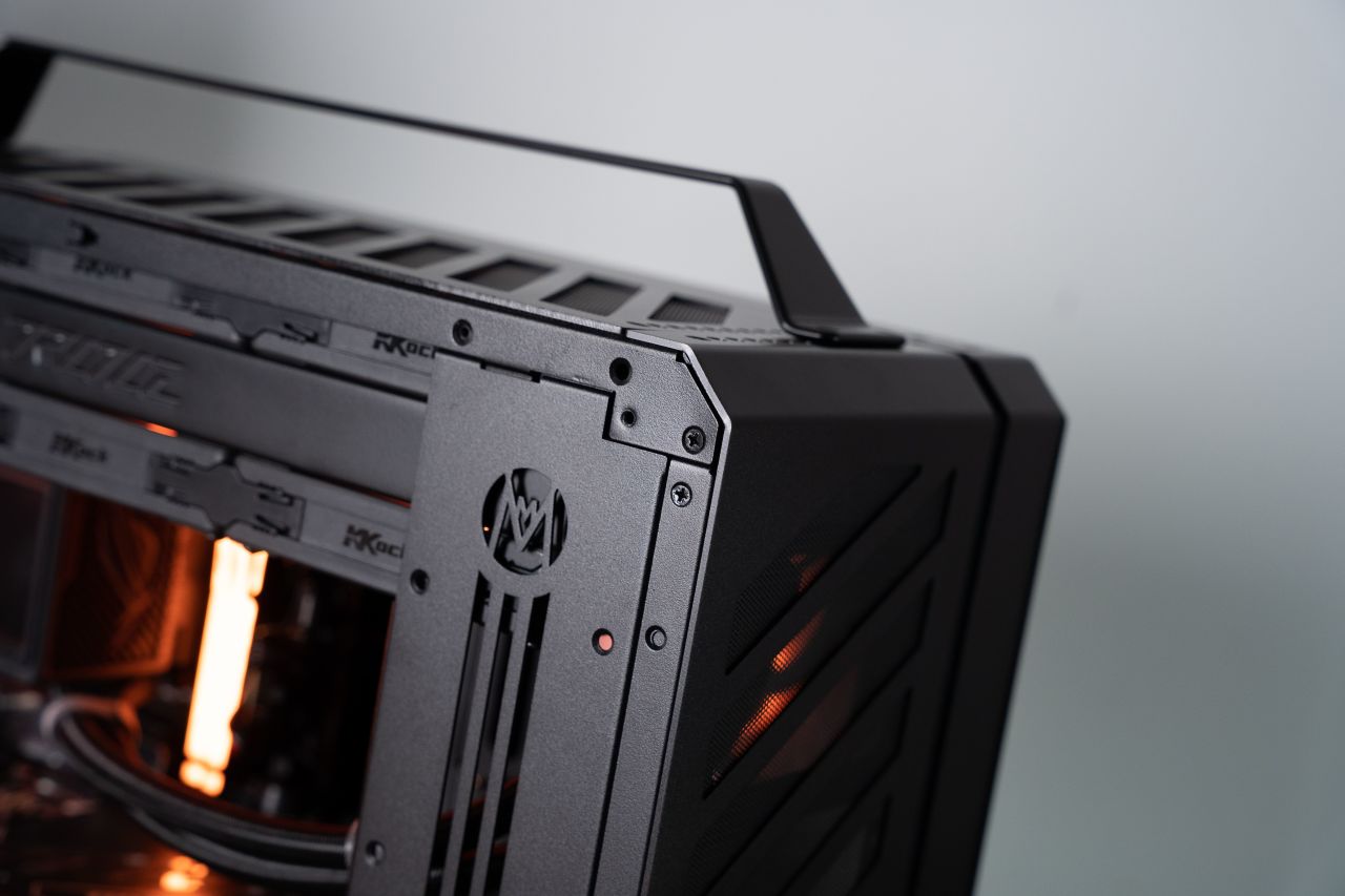 今天這套可以說是細節拉滿,首選是ATX機箱上ITX主板,目的是爲了兼容雙層冷排的超強散熱設計,十片風扇加上華碩的龍神三代水冷,散熱焦慮症瞬間痊癒