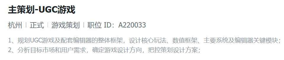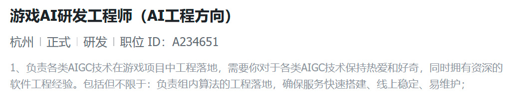 而杭州的江南工作室,从招聘信息来看,他们正一边维持《星球:重启》的长线运营,一边将精力放在了AIGC及UGC项目的探索上。