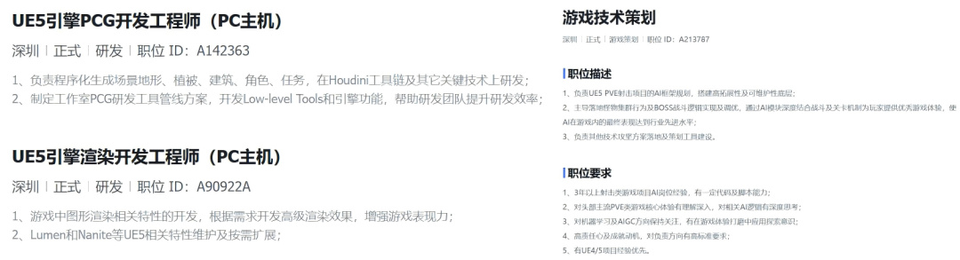 值得一提的是,有知情人士透露,字节游戏还在深圳组建了新的自研工作室,由原《逆战》《绝地求生 全军出击》制作人刘谦带头,团队正在研发一款射击类新品。根据招聘信息,这款项目的关键词有:UE5、PC主机端游、PvE、3A。