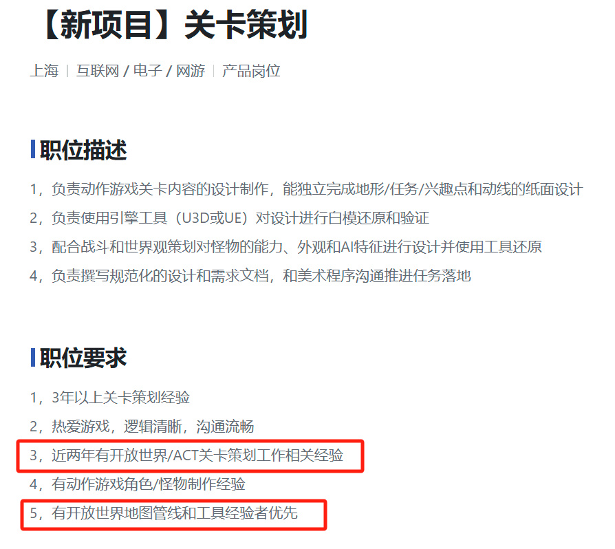 沐瞳的多个岗位还标注了竞技、轻竞技、新项目的标签,关键词涉及到了开放世界、ACT等等。