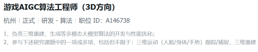 最后,字节游戏还在谋求更先进的技术,以此推动新形态的游戏产品。比如在AIGC和UGC项目的搭建上,他们就放出了大量技术岗位的需求。考虑到目前字节跳动在AIGC方面的整体探索,AI在游戏领域的应用或许也会成为公司的关注重点。
