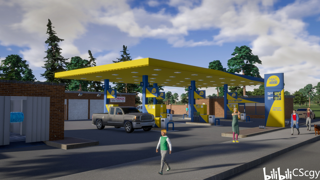 标志性建筑:住宅区有英国总裁宅邸(🐮🍺)和英国城市公寓。商业区有威尔士和英式酒吧、乡村酒店、加油站,以及一个典型的英国超级市场——莫里森超市。
