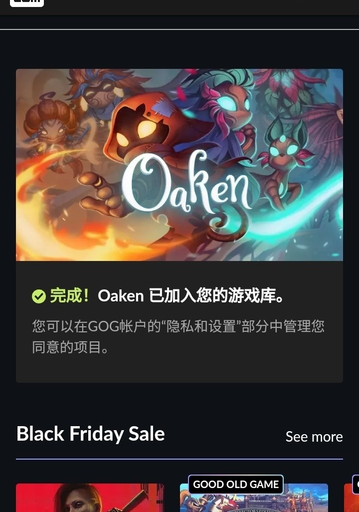 gog喜加一!原價76的好評遊戲《精靈與橡木之歌》現在可以在gog平臺上限時免費領取。