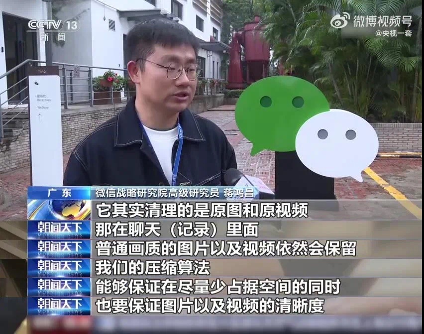 央视新闻的报道证实,微信团队确实正在小范围内测一项“原图、原视频14天自动清理”功能。