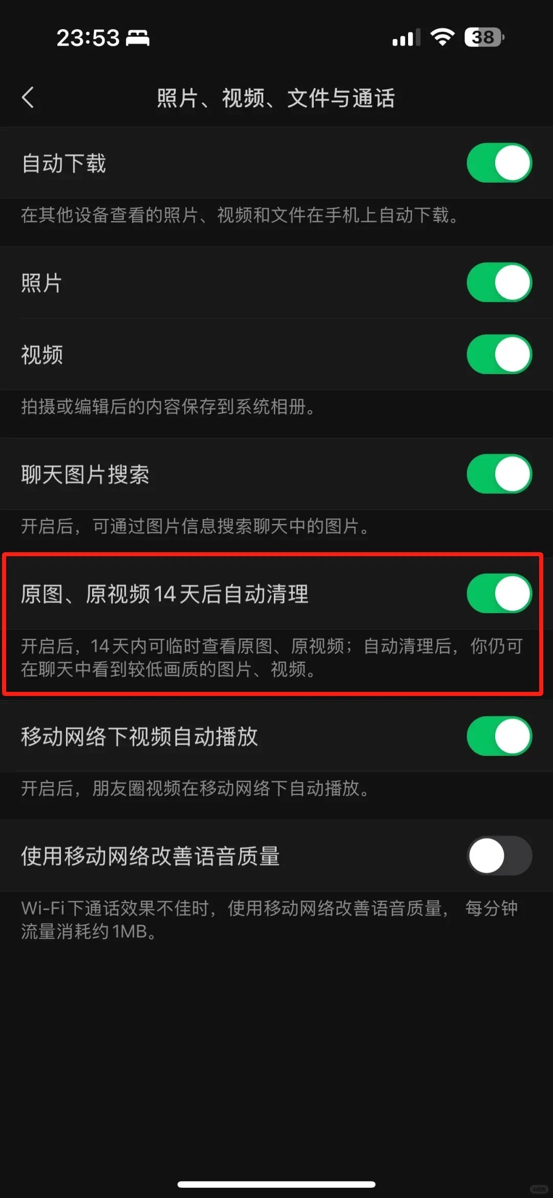 最近,有网友发现微信上新增了一个【原图、原视频14天后自动清理】开关(当然,不是所有用户都有这个功能)