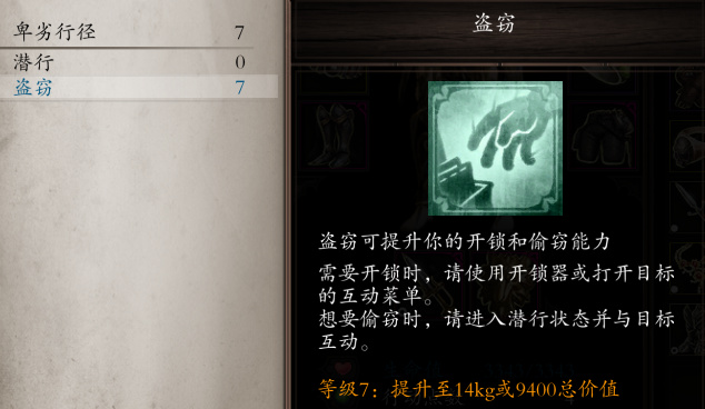2、偷窃前需要先进入“潜行”状态
