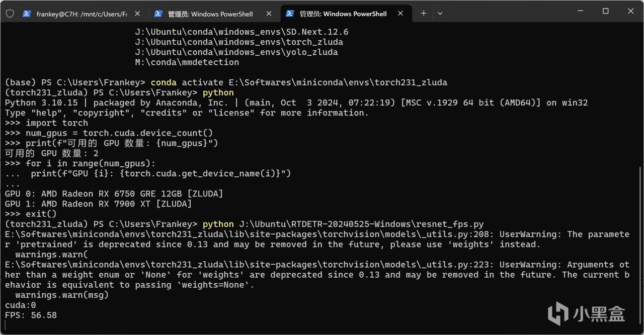 需要注意的是,無論是WSL還是Windows,你在本教程中安裝的pytorch可能會被一些程序的安裝腳本安裝的CPU版本的pytorch覆蓋掉,此時你就應該參考本教程,重新進行安裝。因此,這樣的環境並不是一次安裝成功就可以一勞永逸了,本教程屬於授人以漁的範疇,任何時候你需要在新的虛擬環境中安裝一個可使用AMD GPU的pytorch你都可以參考本教程進行安裝。