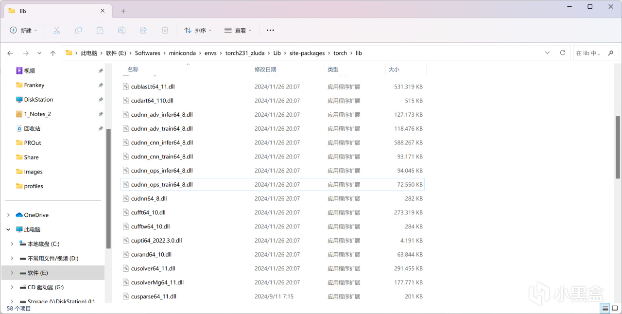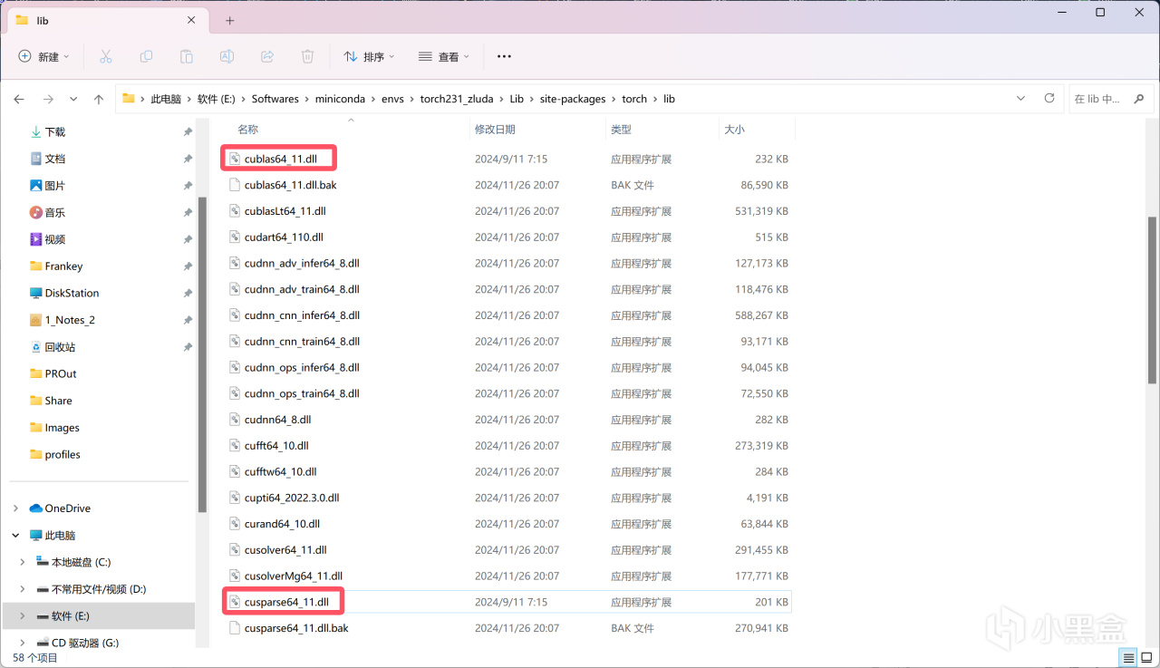 在pytorch的lib目錄中將從Zluda目錄複製的cublas.dll和cusparse.dll分別重命名爲cublas64_11.dll和cusparse64_11.dll。