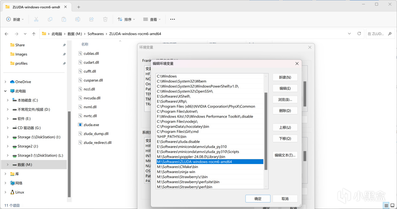 將其隨便解壓到一個地方,然後用與上文相同的操作打開環境變量編輯,將你解壓Zluda的路徑添加到"Path"變量中。