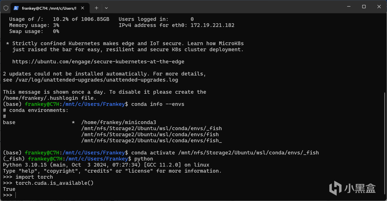 爲保持base環境的乾淨,使用如下命令新建一個虛擬環境,注意,WSL的pytorch僅支持python 3.10版本,所以一定要使用3.10版本的python: