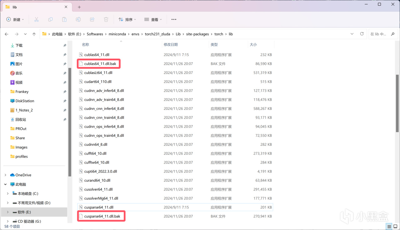 將cublas64_11.dll和cusparse64_11.dll分別重命名爲cublas64_11.dll.bak和cusparse64_11.dll.bak: