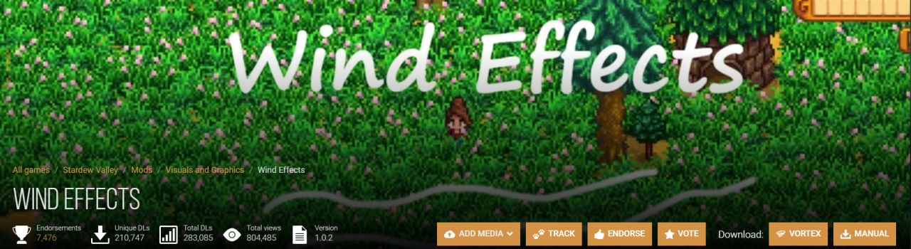 让游戏内的草和树会被随机产生的风吹动。一大片草被风晃动的感觉还是很舒服的。提醒一下n网原mod已经失效了,mod评论区作者贴了新下载链接。