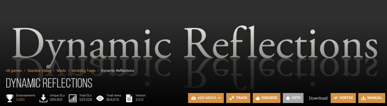 同样,很细节的一个美化新增,但就是能提高整体游玩体验。这个镜面反射mod不仅把最简单的水面倒影加上了,屋内的镜子、电视机内的倒影细节也有。更舒服的是晚上湖面还会反射出天上的星星,偶尔还会有倒映的流星划过水面。非常扎实的一个模组。