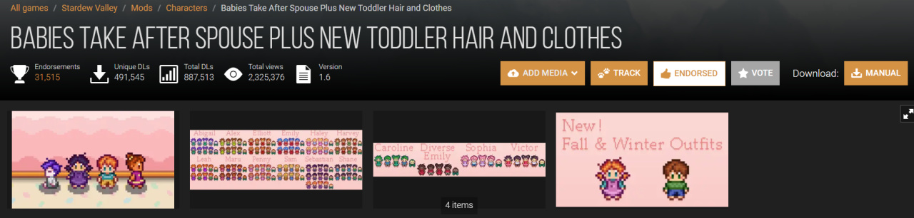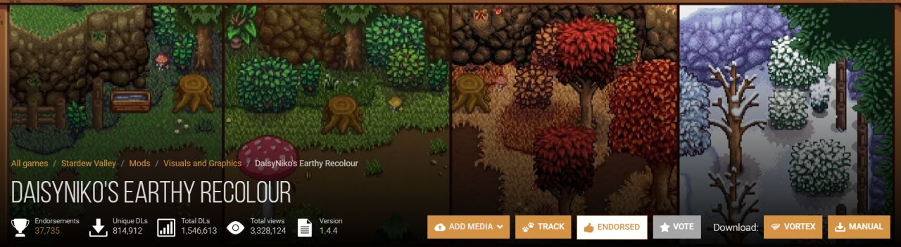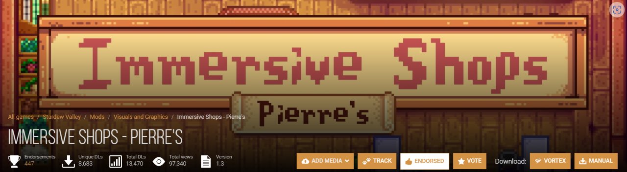 主流且好用的内容扩展mod其实就sve和里奇塞德村两个。但美化mod有很多,我上面分享的只是一部分。有些肥料土壤颜色变化、季节房屋变化我都没分享。还有各种风格的村民肖像美化、建筑美化更是一大堆,这些都是萝卜青菜各有所爱,没有分享参考的意义,各位自行去下自己喜欢的就行。像我就喜欢原版像素画风,对那些动漫画风不感兴趣。