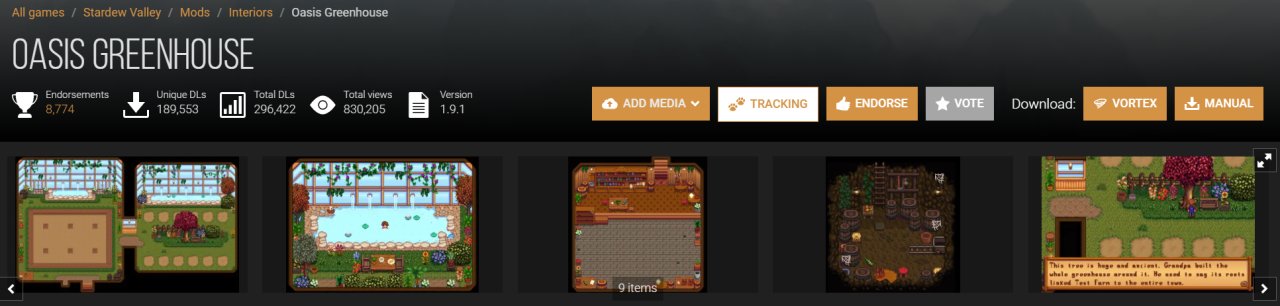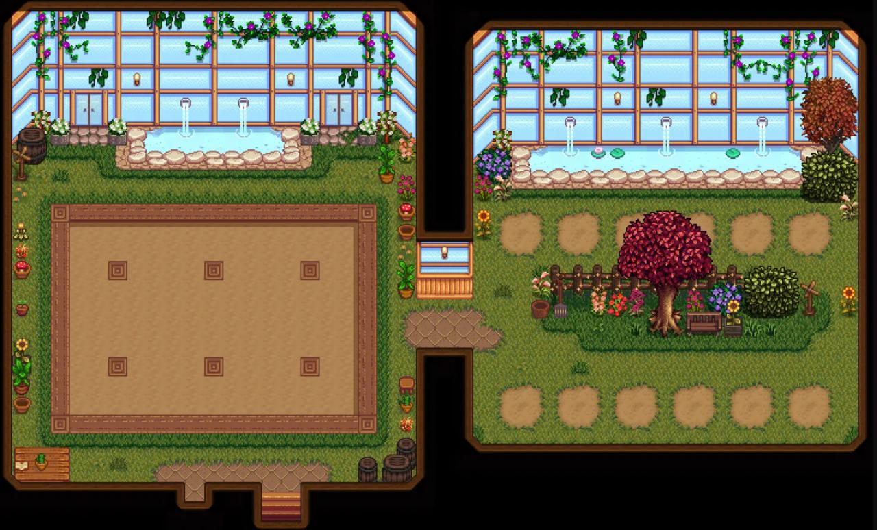 好看+好用,给温室加了一片果园可以种树。不过说来惭愧我还没见过原版温室长啥样。这个mod还给温室加了一个地窖,酿酒狂喜。