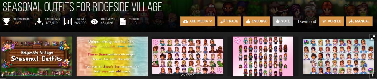 不过建议不要直接下载mod,先花几分钟时间安装一个Vortex模组管理器。有了这个东西,后面版本更新的时候就可以自动更新mod,会方便不少。不然就得像我一样花几个小时手动下载。