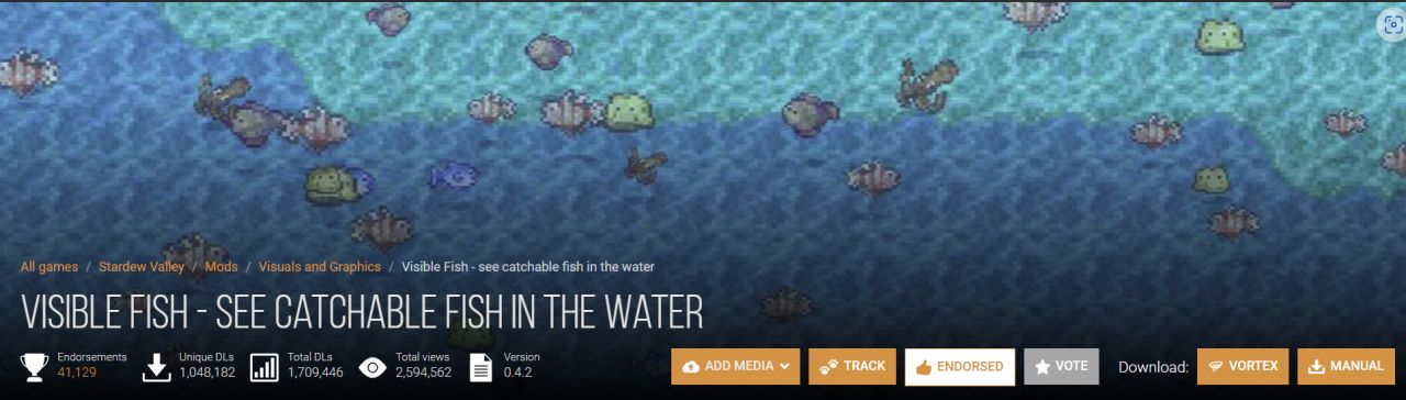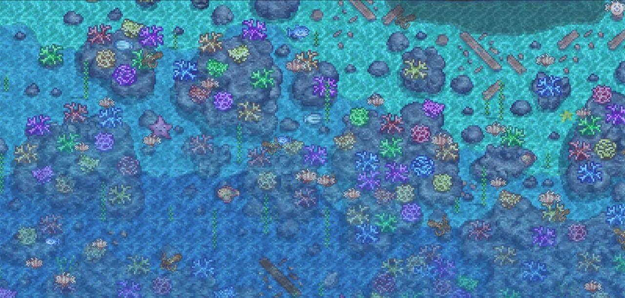 很直白的一个改动,但我觉得它对游戏体验的提升非常大。加上这个mod后不管是湖面还是海面不再是一成不变的水,而是有实时游泳的鱼。更舒服的是这些鱼都是该水域实实在在产生的鱼,不是随便加上去的贴图。特别是夏季近海一堆珊瑚,非常漂亮,那种勃勃生机万物竞发的感觉犹在眼前。(该mod也完美兼容sve等扩展mod鱼类)