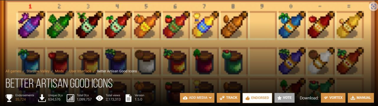 又是一个好看又好用的mod。可以让果酒和果酱等工匠制品根据原料的颜色变色。另外这个mod也失效了,mod作者在评论区发了新下载连接。