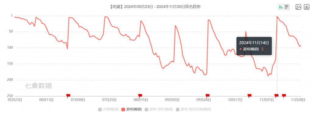 值得一提的是,《鳴潮》在11月14日還取得了iOS暢銷榜第五。