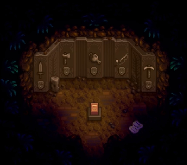 特點:在山洞內部,玩家可以在東南角找到一封爺爺留下的信,洞穴中央有一個底座,上面寫着“最後的道路”,並顯示精通進度條,還有五根柱子,每根柱子都描述了一種技能的精通程度。