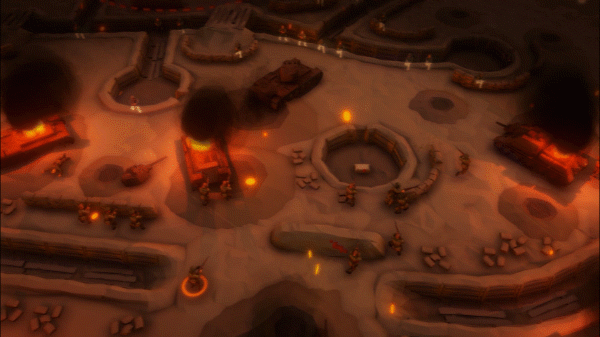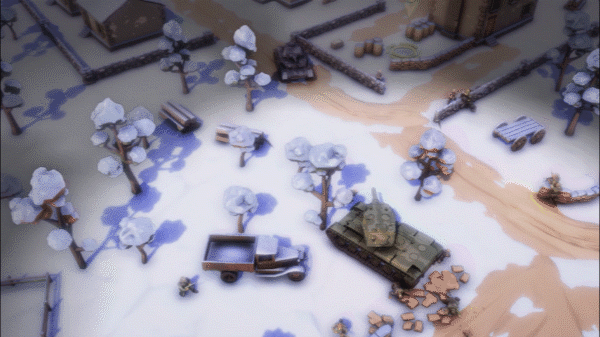 一款挺有想法的俯视角战术射击游戏。游戏的画面是3D建模,但是因为是Low Poly风,所以建模水平还行,比场景建模要好一些,表现最好的是载具建模。有场景破坏效果。总体来说画面算是中等水平。玩法类似小兵步枪,玩家作为步兵可以操控冲锋枪,步枪等一系列单兵武器,还可以操控坦克,88炮,迫击炮。还可以让玩家指挥多只小队,进行移动,冲锋,强攻等命令,甚至还能发动炮击和空袭来攻击敌人。