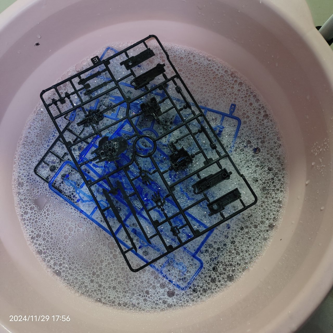 4.清洗板件,答辩模型建议先洗洁精泡水在20分钟以上,因为这种廉价塑料有脱模剂,直接拼手可能会掉皮,而且之后要是上色也会更容易,不容易剐蹭掉