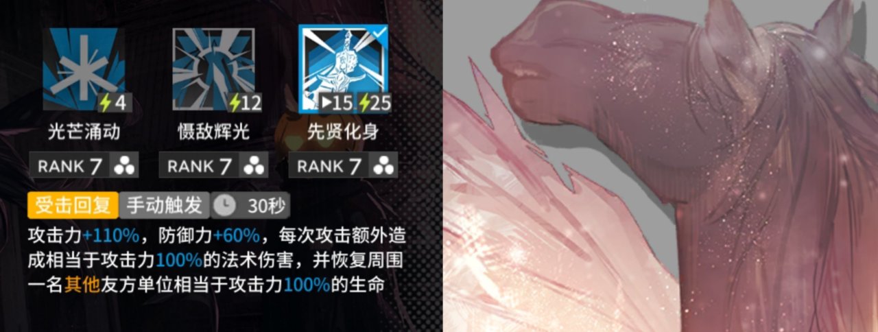 荒蕪拉普蘭德第二天賦+6初始技力也能幫助斥罪③更快啓動,有瑕光在場也能大幅提高釋放頻率,③技能純粹的高數值,如果把受回改成自回就太強了吧,重裝左樂?