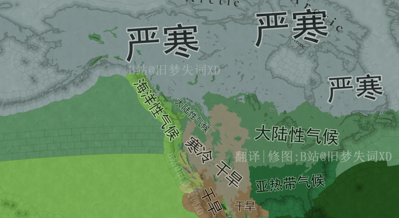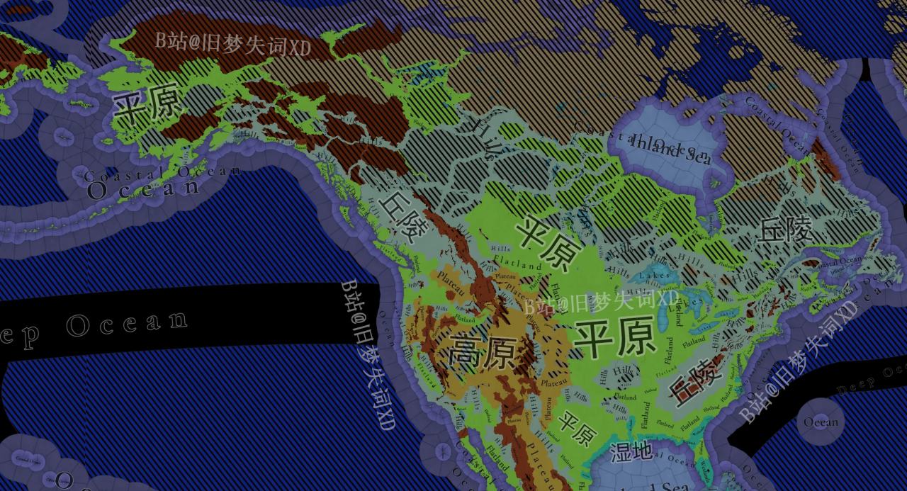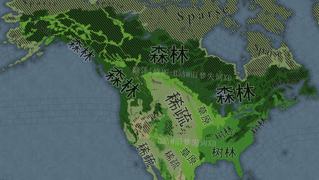 北美洲有從北極到乾旱的絕大部分氣候。落基山脈岩石遍佈。而關於植被,我們希望能儘可能地還原1337年的植被覆蓋率,但是也因此導致某些地方過於單調,歡迎大家提出修改意見。