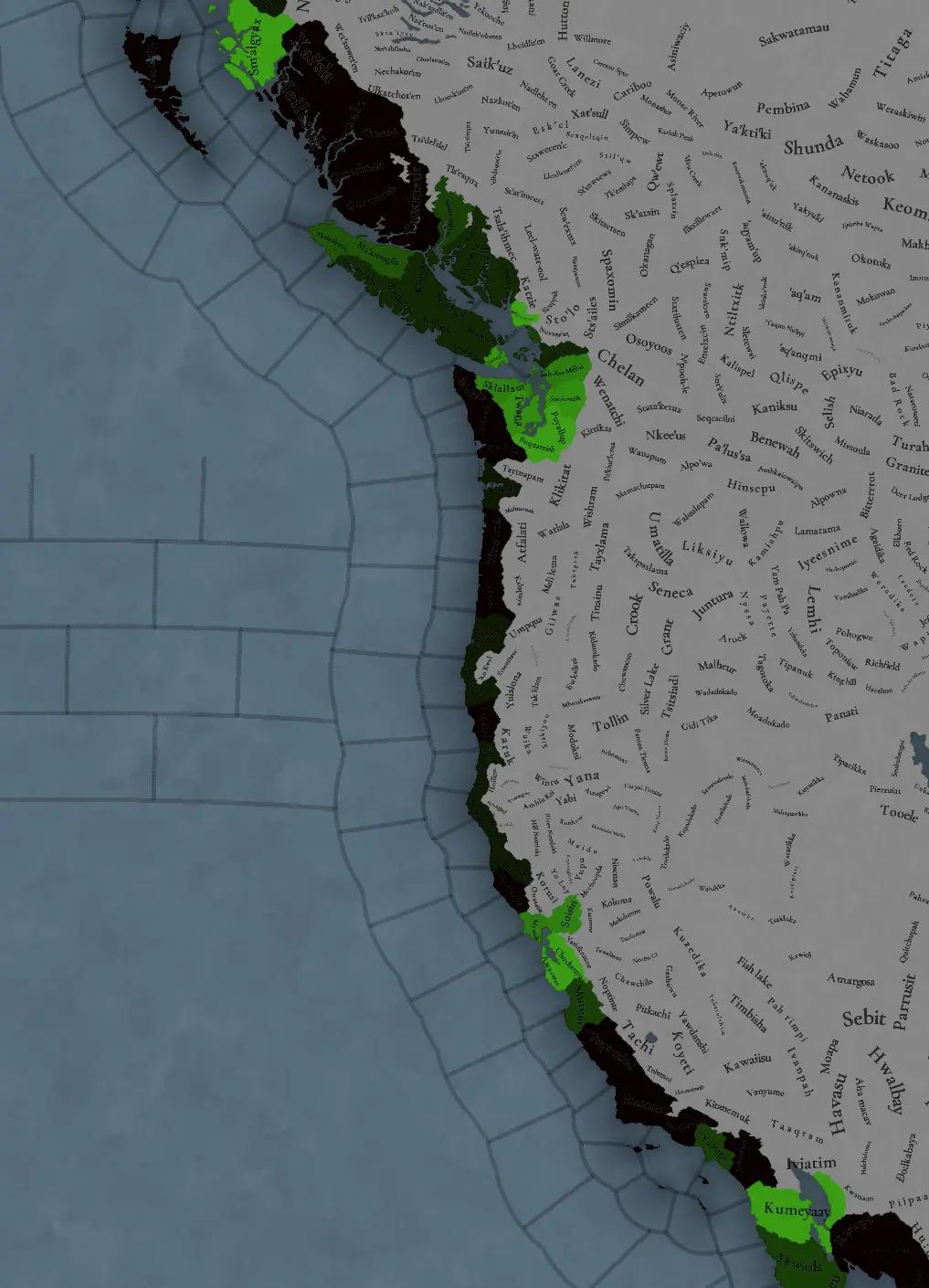 歸根到底,許多地塊都是巨大的次大陸...我們已經儘可能地使用本地語言命名,當然我們也無法顧全所有地塊。如果大家知道這些原住民和殖民者稱呼的地名,我們不勝感激,因爲這是一個非常困難的任務。
