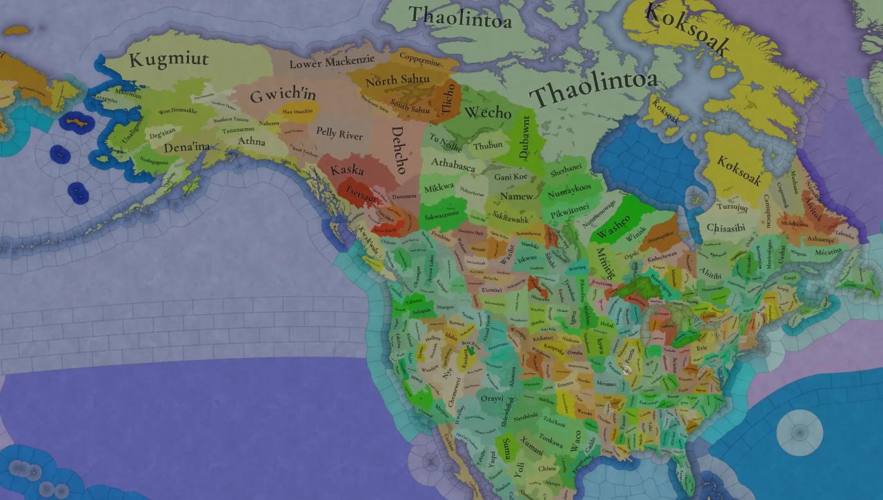 本期地圖的史料考究難度很大,因爲我們所能查到的所有資料都來自於16世紀以後,當時原住民社會已經與兩個世紀以前的社會幾乎完全不一樣了。比方說埃爾南多·德·索托在1540年左右關於庫薩酋長領地的第一份報告中提出,該部落的組織方式已符合我們對於有地國家的設定,且考古學也證實了這一點。然而1337年該部落的組織度還沒發展到如此成熟,且沒任何數據可以與卡霍基亞的數據相媲美。在與德·索托和其他一些歐洲探險家相遇幾十年後,外來的瘟疫導致酋長領地崩潰,最終成爲一個類似於無國家社會的組織。這種複雜的歷史動態變化使得我們很難對1337年的實情做出正確的判斷,也使得我們很難在現開發階段中,開發出適配於無國家社會的機制。