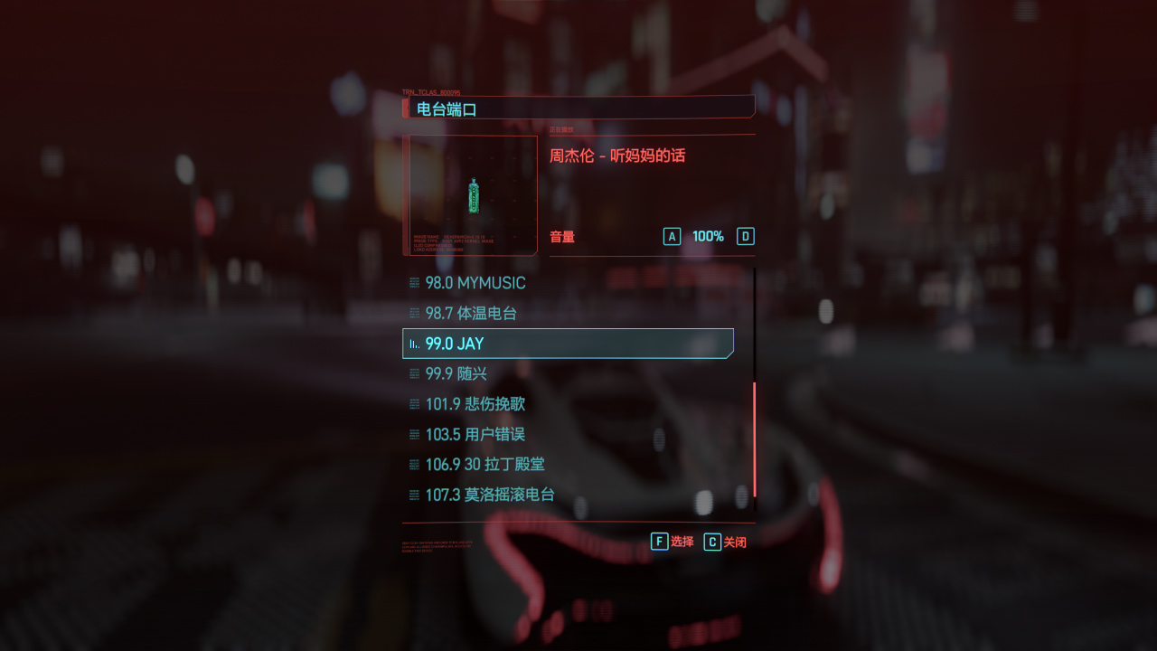 2077年周杰倫的演唱會或許開不到夜之城,但是我們可以在夜之城聽上一首《聽媽媽的話》。這個MOD的功能可以把自己喜歡的歌曲放入遊戲內的電臺。