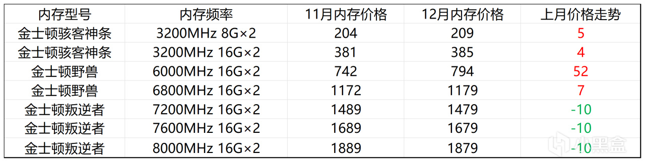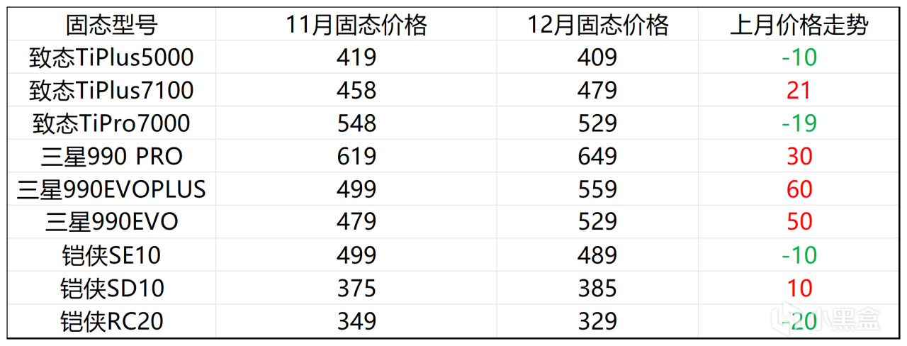 固態硬盤價格因爲雙十一活動結束的原因,本月價格小幅上漲,不過熱門性價比型號價格相比上個月還是繼續下降的,高頻D5內存價格也在持續下降。