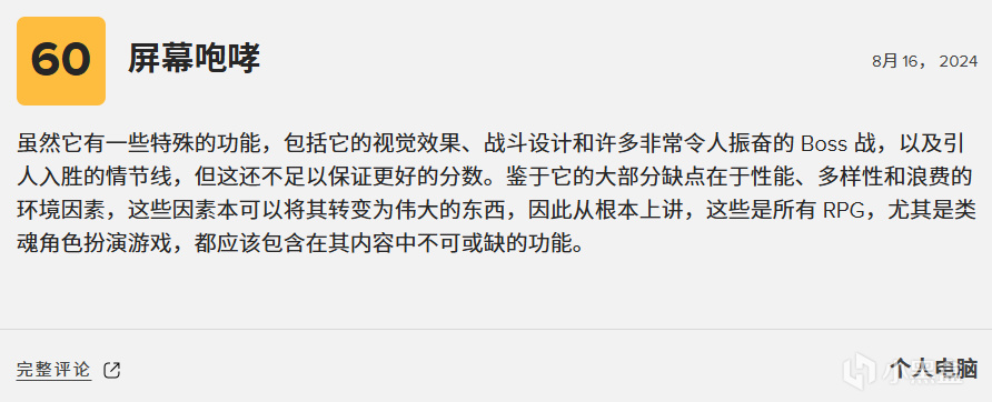 遊戲裏當然有客觀存在的問題,而且每篇測評都能說上那麼幾個,但是對同一個問題,要扣多少分,各家都有自己的想法,有的最後給了60分,有的最後給了80分,也有的,給了100分。