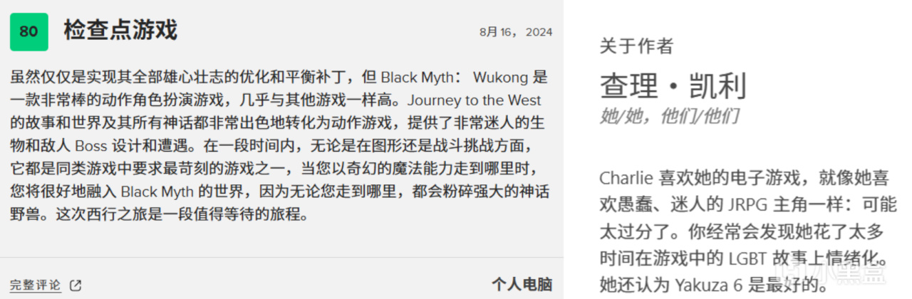 只有等到國產3A遊戲越來越多,在國外培養出了一批喜歡中國遊戲的作者,MC評分,纔會變高。