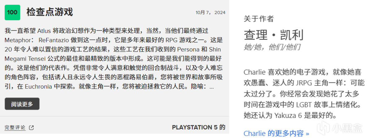 比如這家來自澳大利亞的Checkpoint Gaming對《暗喻幻想:ReFantazio》的測評: