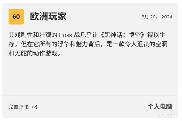 綜合看完這幾篇測評,給我的感受就是,非魂類遊戲作者認爲黑猴太難了,受苦不值得。魂類遊戲作者認爲類魂遊戲都該有的東西黑猴卻沒有,差評。這是兩頭都不討好啊,太難了。