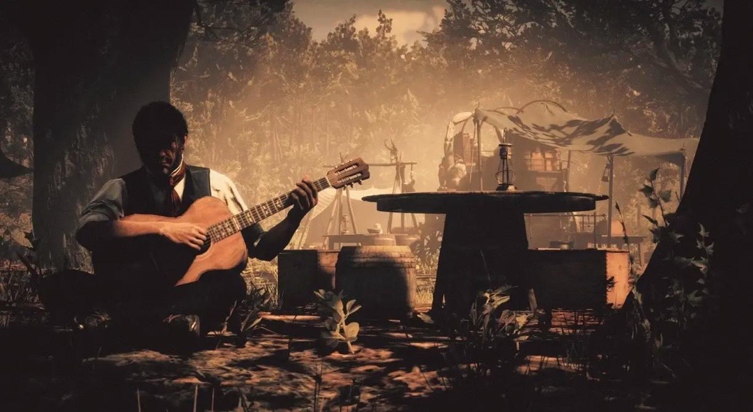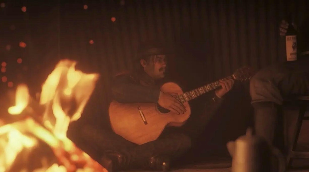 哈維爾非常擅長彈吉他和唱歌,我們經常能在營地中看到哈維爾坐在篝火旁彈唱,還挺好聽的,這裏的氣氛也是遊戲中比較溫馨的一段。