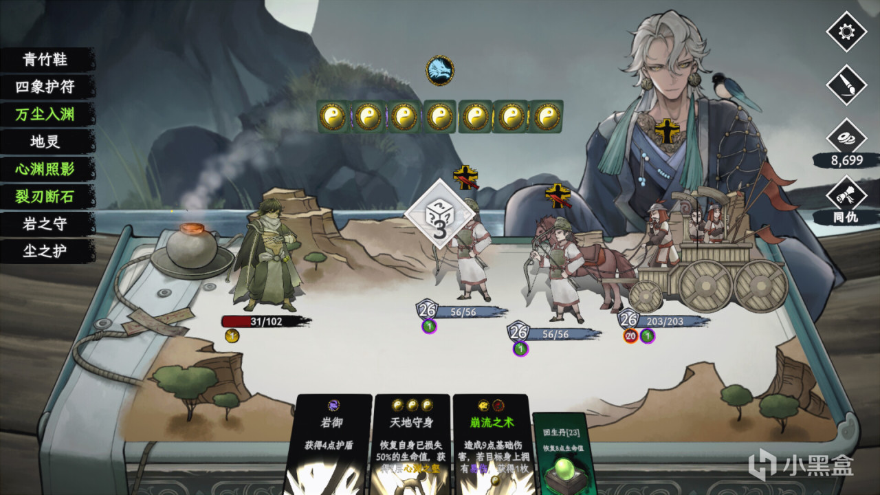 虽然乍一看这似乎又像是款早已泛滥成灾的卡牌战斗游戏,但实际上本作更多的元素是偏向于以单人跑团的形式讲述各种离奇的故事。游戏的美术表现相当亮眼,水墨国风与志怪主题极为契合。BGM方面也与之搭配采用了大量古风韵律,这就使得游戏的整体气质表现极佳。玩家可以选择七个不同的角色,每个角色的能力和故事线各异却又暗中存在羁绊和联系。以投骰为主要形式的卡牌战斗兼具策略性和随机性,体验起来还是比较有趣的。