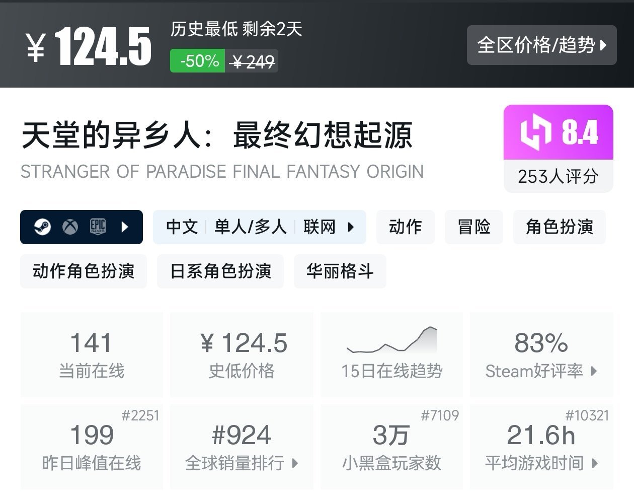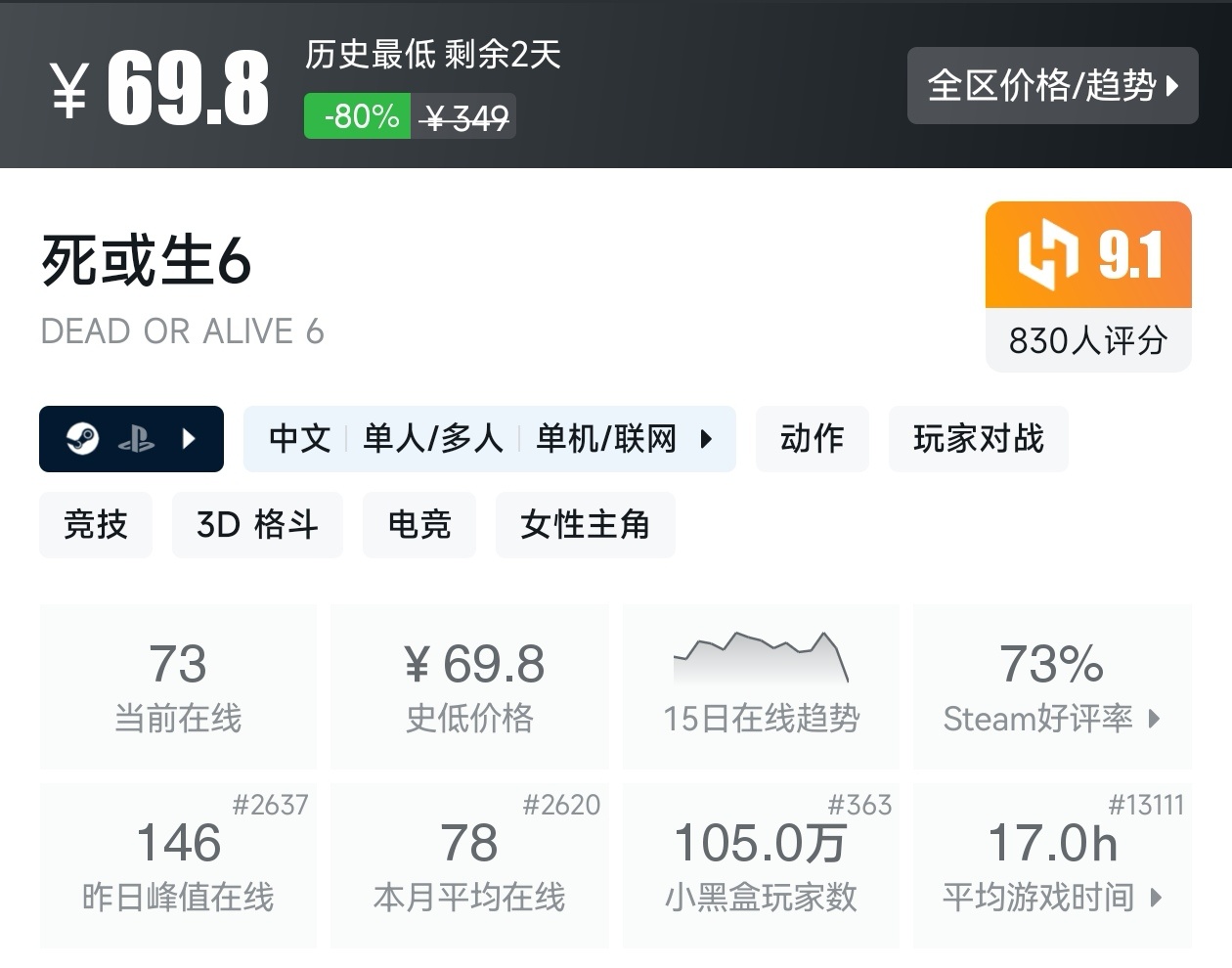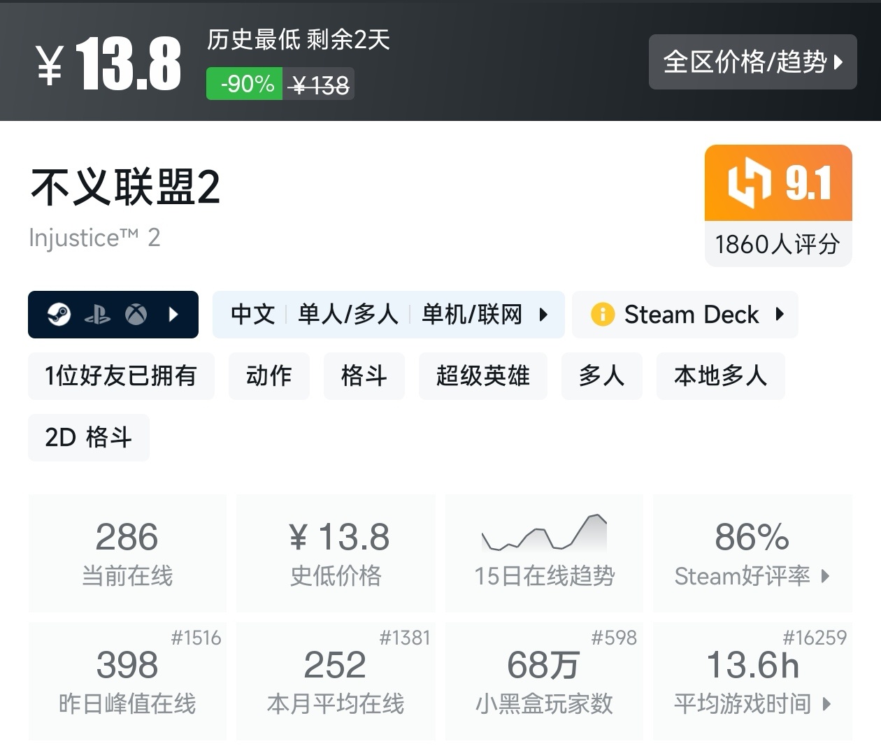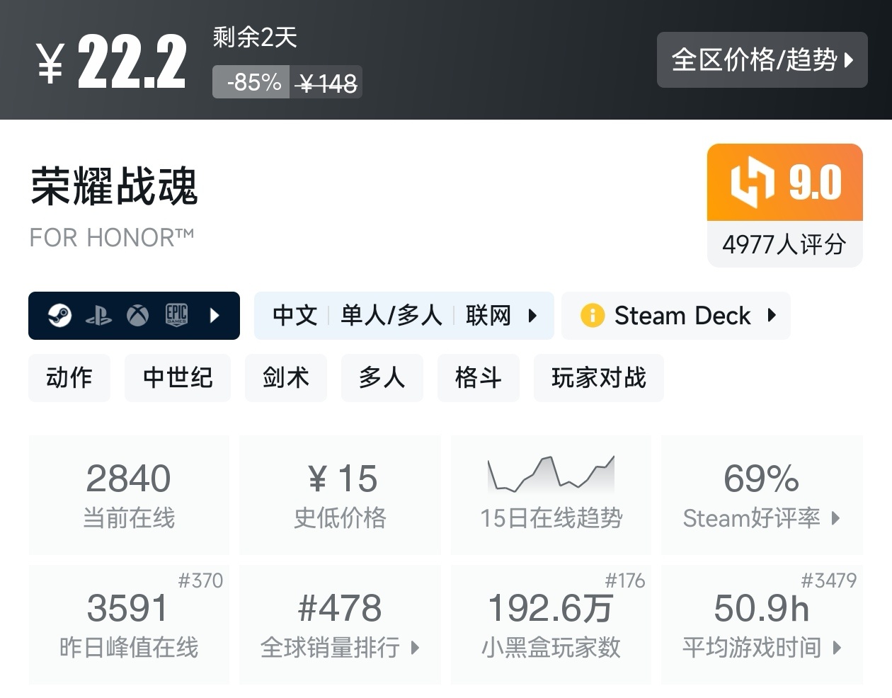 大家好,转眼就快到系列折扣汇总的第十期了,这一期给大家带来的是战斗/格斗游戏的折扣汇总,做这一期我用了相当严谨的筛选标准,因为动作/格斗游戏主打的就是一手战斗爽,所以我几乎排除了魂游与类魂,留下来的都是人物机动性高的游戏,希望我的汇总,能够帮助各位盒友挑选心仪的游戏。