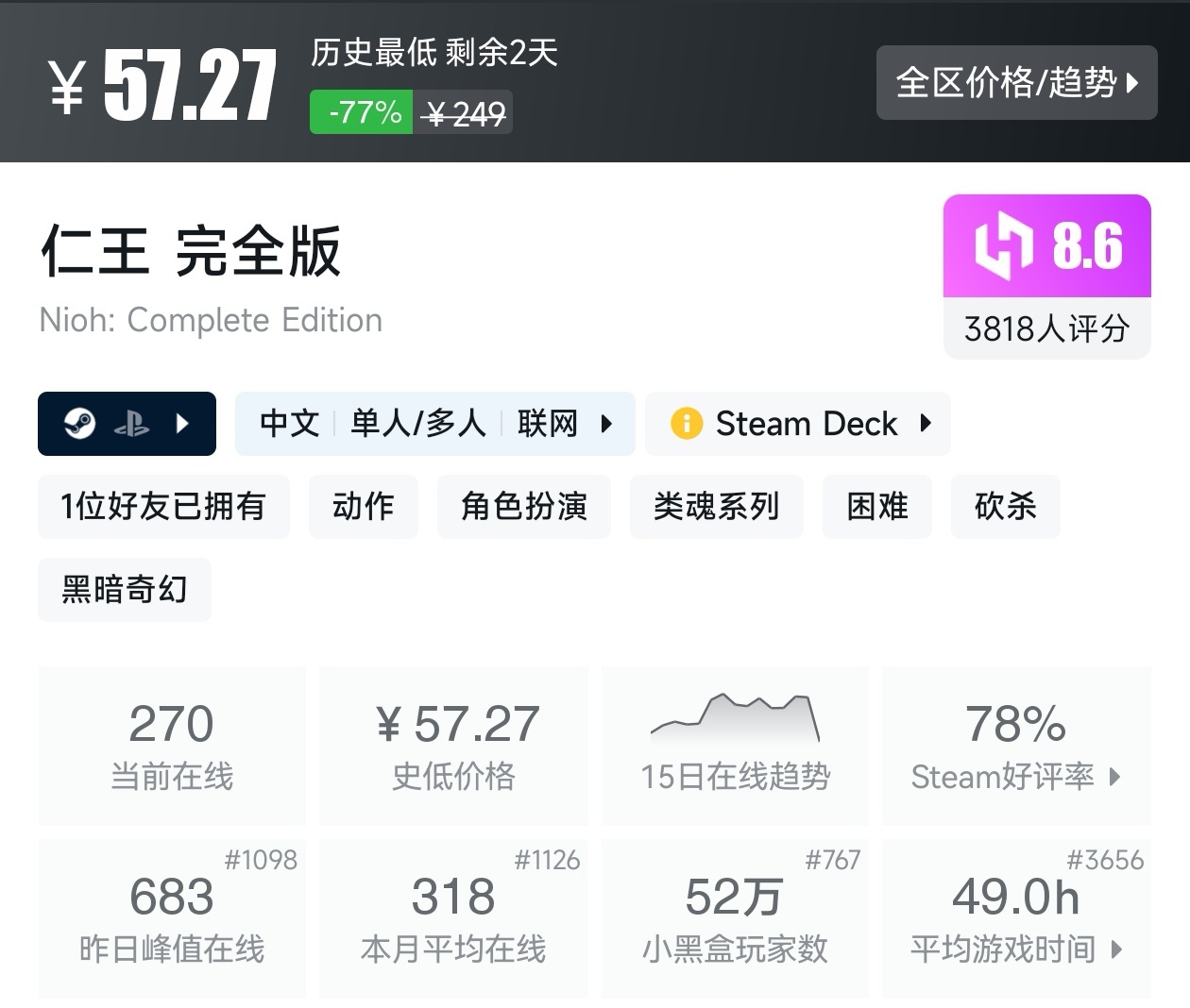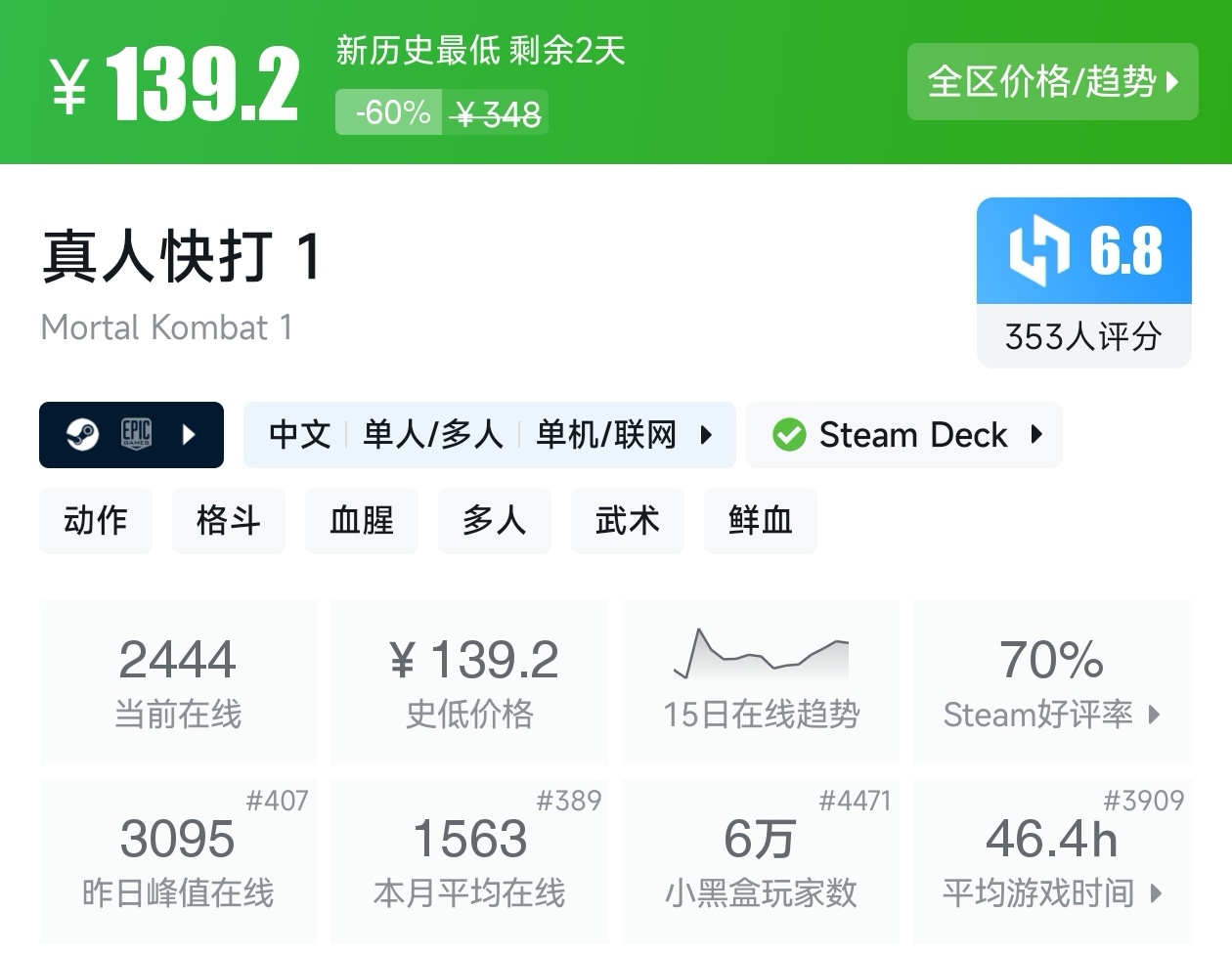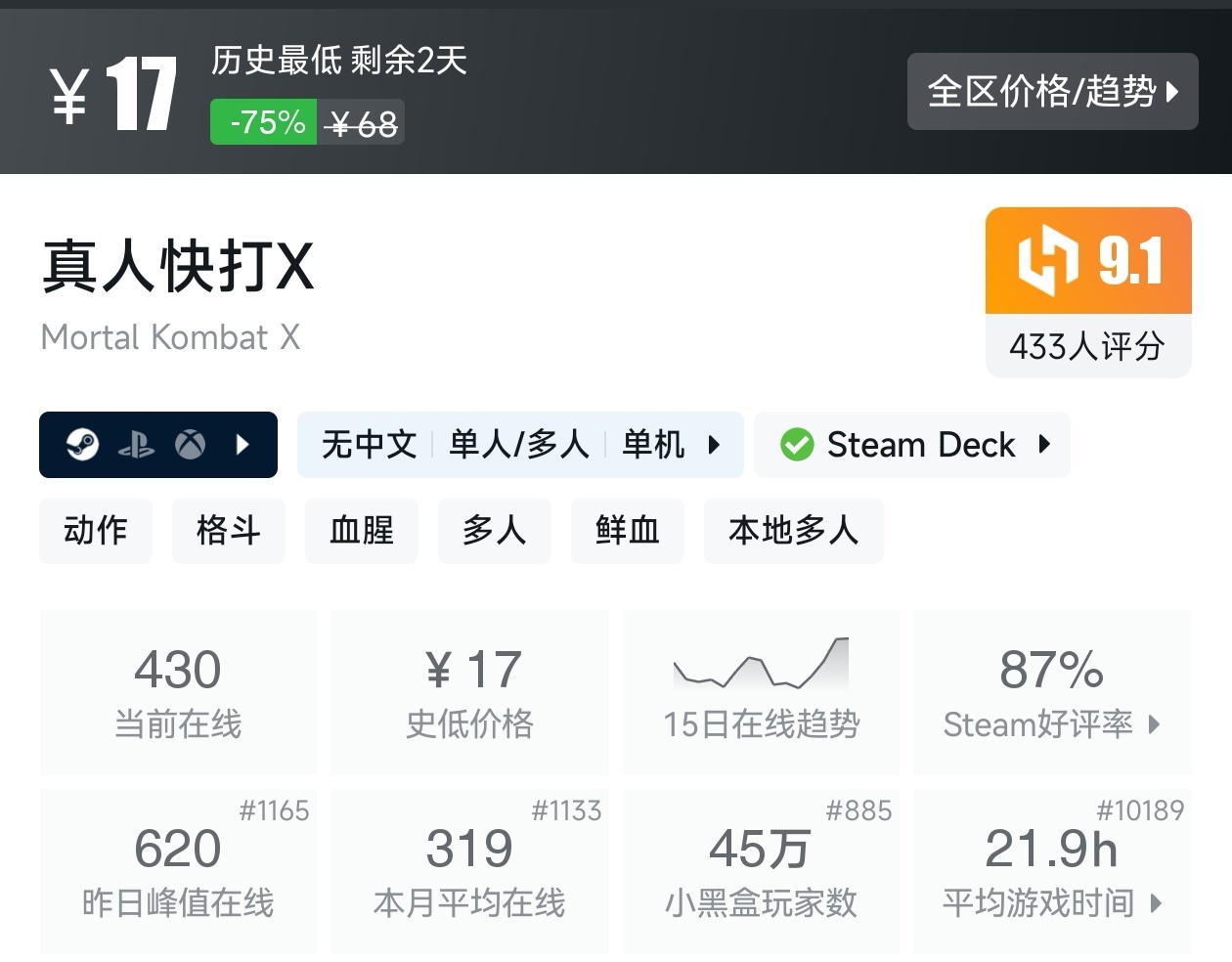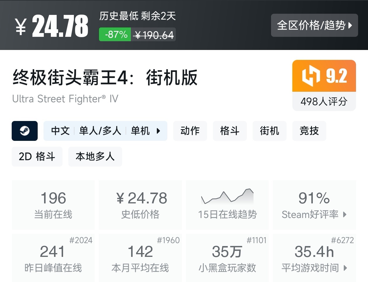 大家好,转眼就快到系列折扣汇总的第十期了,这一期给大家带来的是战斗/格斗游戏的折扣汇总,做这一期我用了相当严谨的筛选标准,因为动作/格斗游戏主打的就是一手战斗爽,所以我几乎排除了魂游与类魂,留下来的都是人物机动性高的游戏,希望我的汇总,能够帮助各位盒友挑选心仪的游戏。