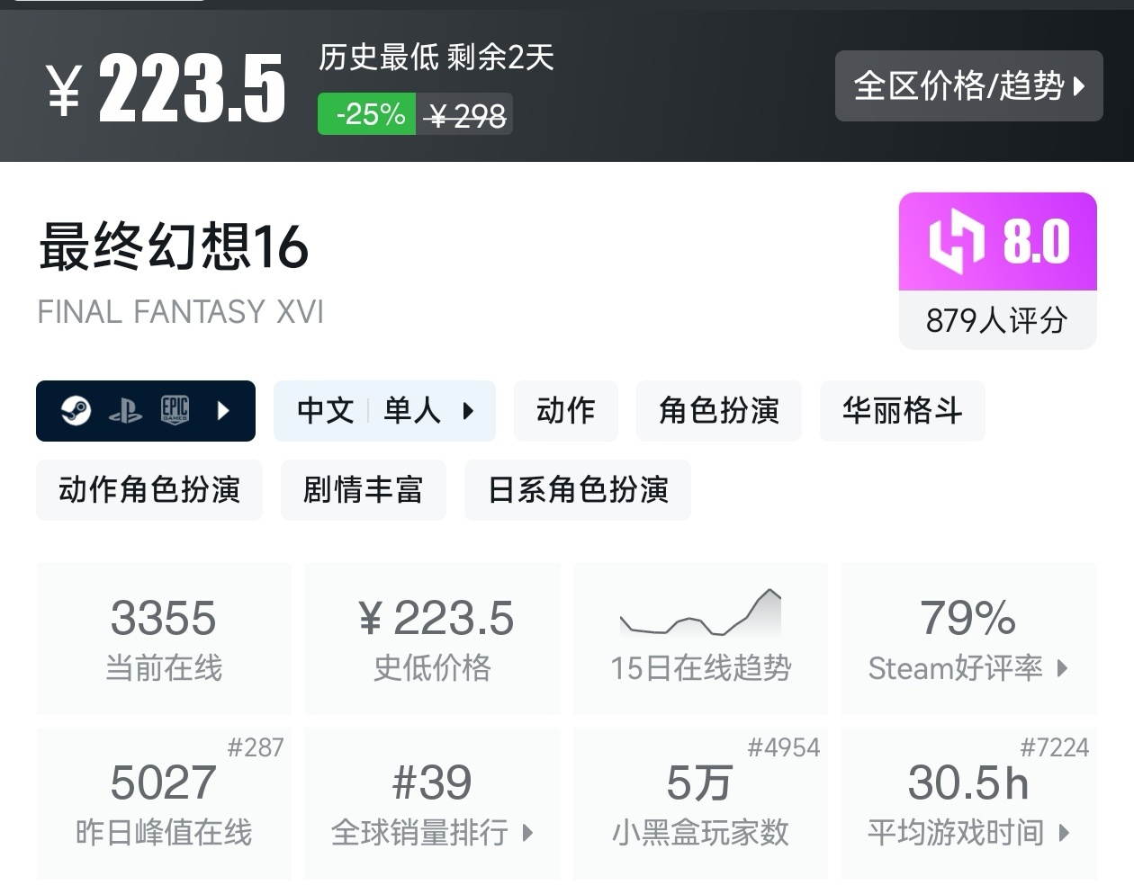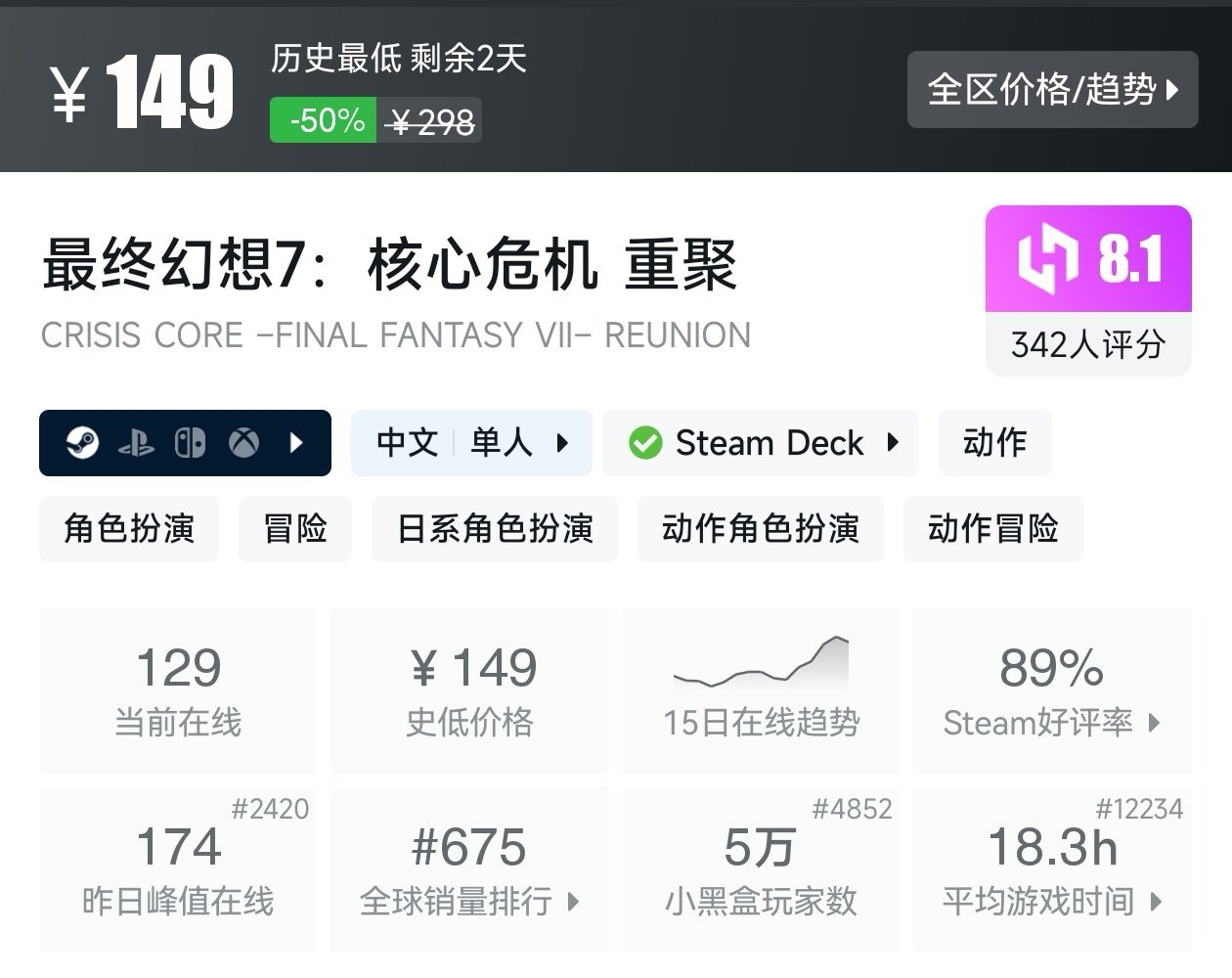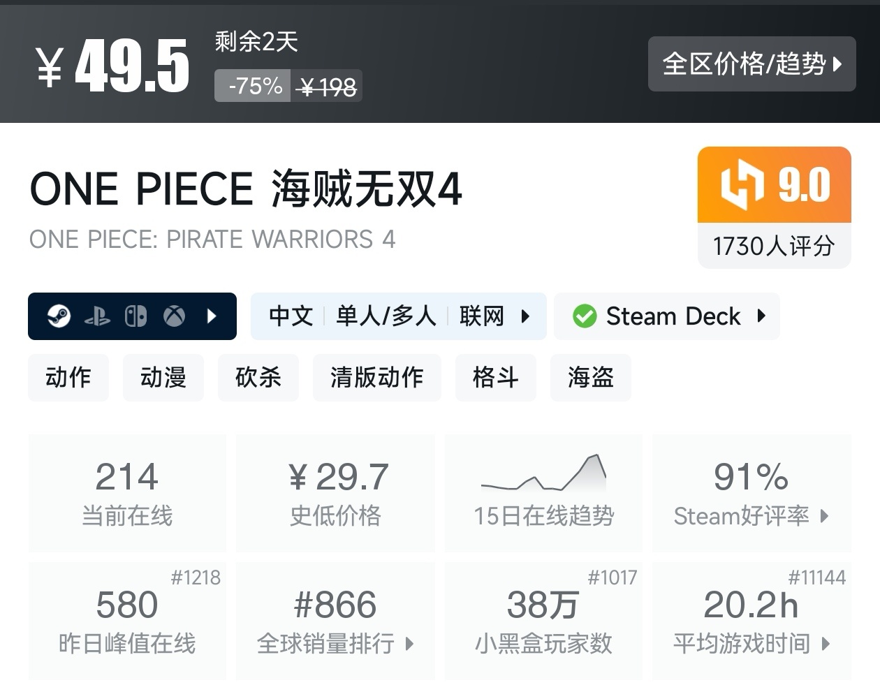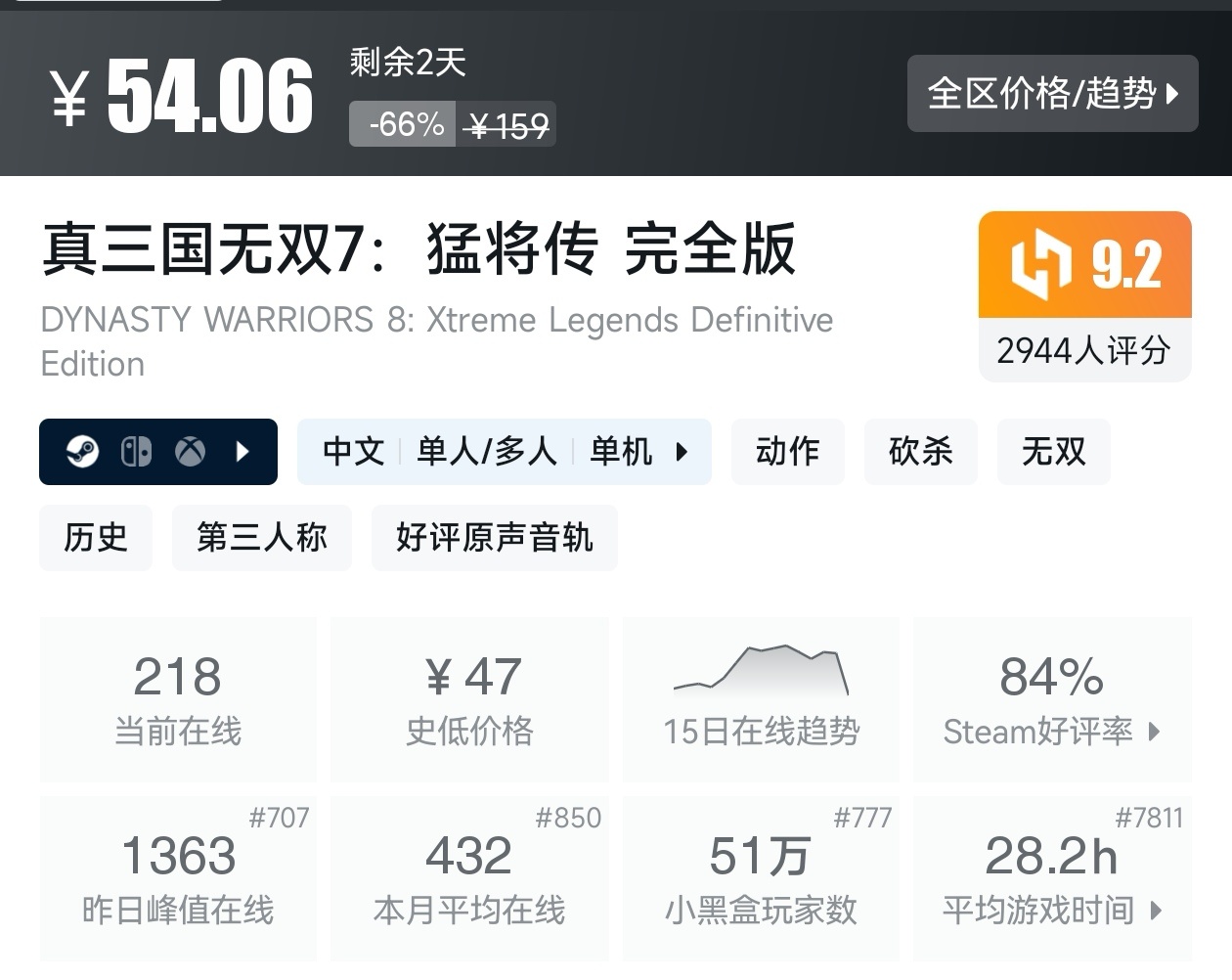 大家好,转眼就快到系列折扣汇总的第十期了,这一期给大家带来的是战斗/格斗游戏的折扣汇总,做这一期我用了相当严谨的筛选标准,因为动作/格斗游戏主打的就是一手战斗爽,所以我几乎排除了魂游与类魂,留下来的都是人物机动性高的游戏,希望我的汇总,能够帮助各位盒友挑选心仪的游戏。